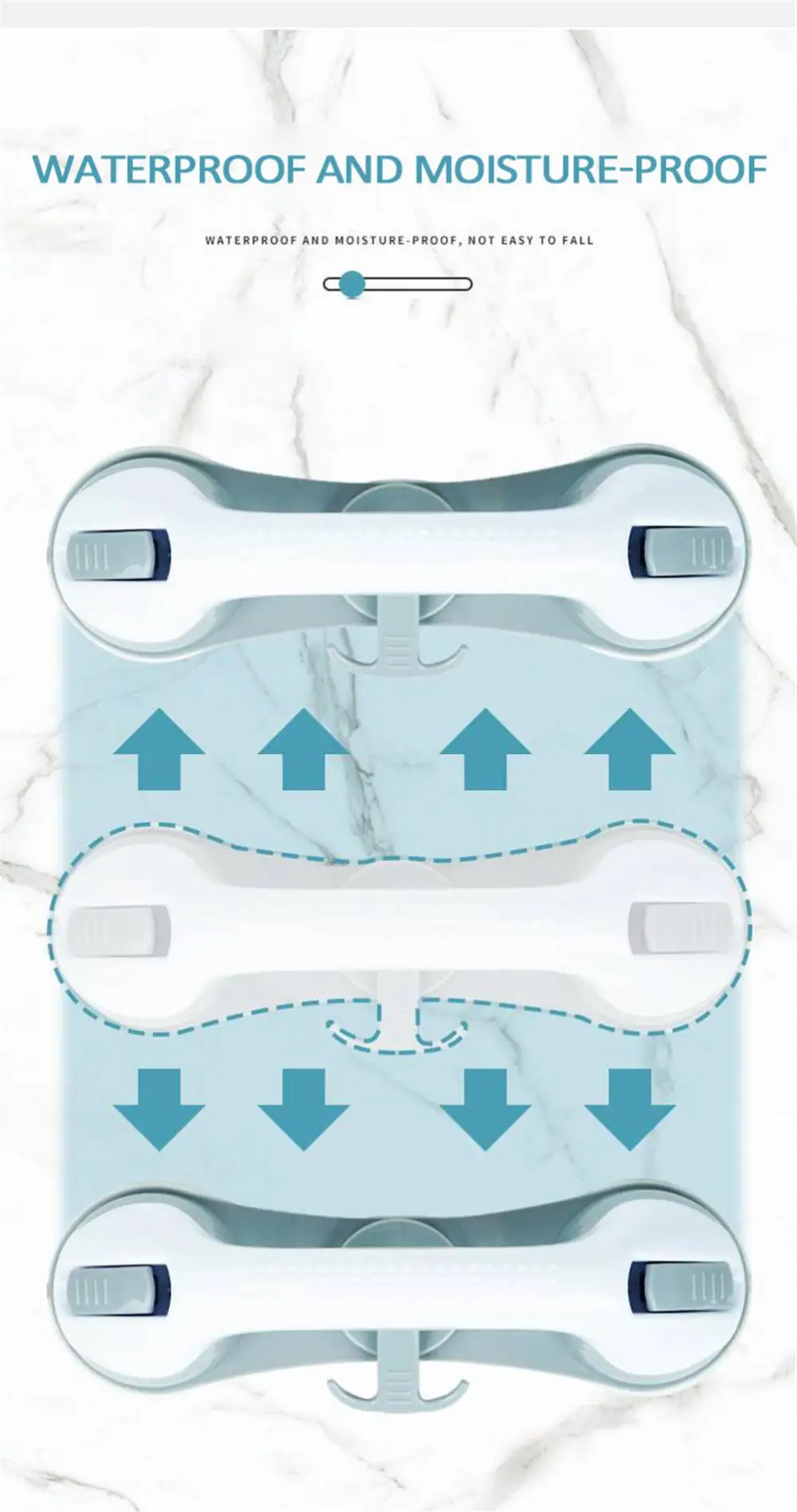 3.Tool-Free Installation -- The bathroom grab bars is easy to install, no tools required and no drilling needed. Please clean and dry both surfaces of 3 suction cups grab bars and wall, hold the bathroom handle and press suction cups firmly into place, then push them to the wall as near as possible, then lock down both levers completely to secure. The shower handles don’t harm the surface it’s on nor leaves marks when placed right.